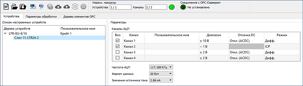 Без приобретения лицензии OPC-Сервер “Л Кард” работает в демонстрационном режиме, в котором можно использовать только одно устройство и не более двух каналов ввода-вывода.
